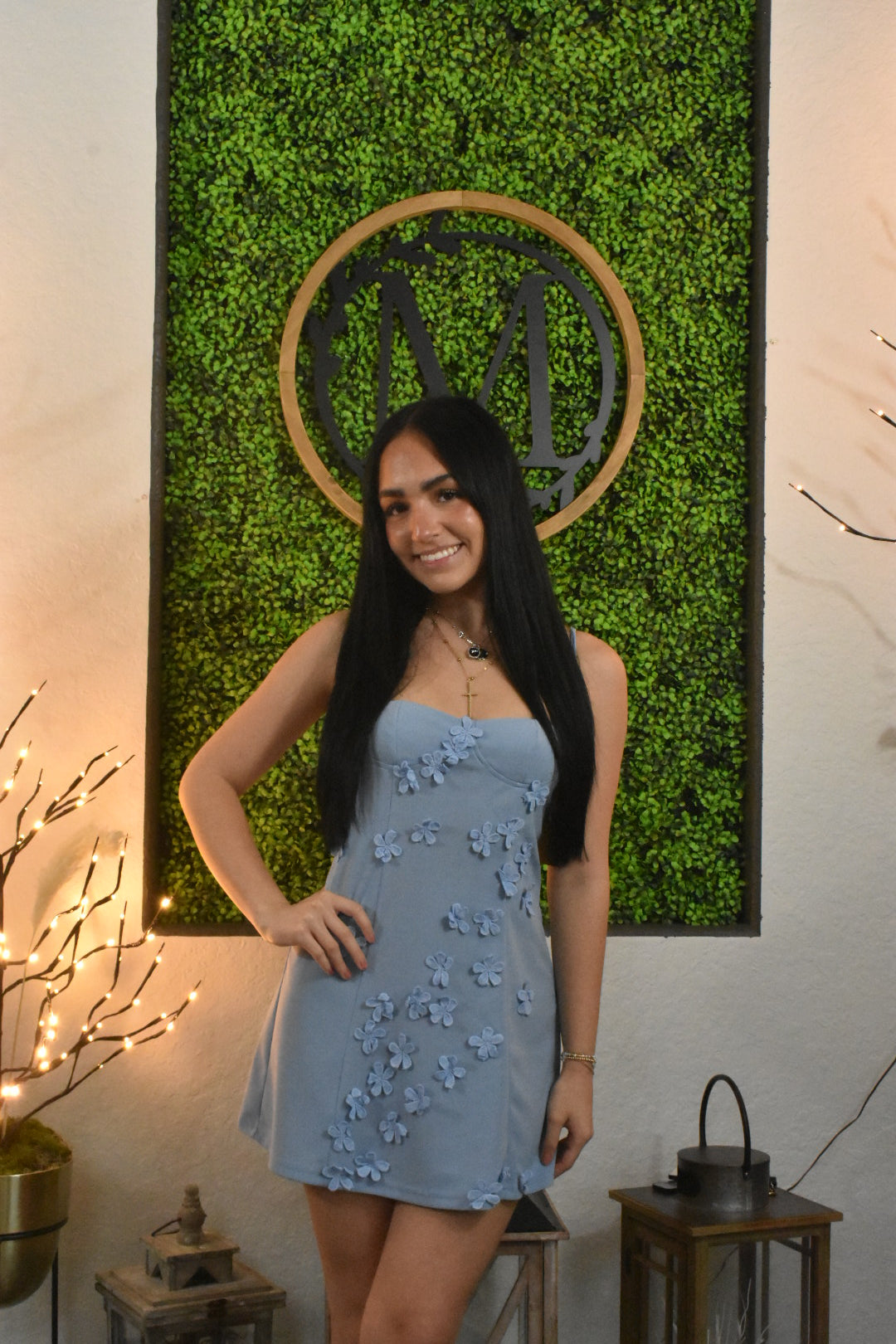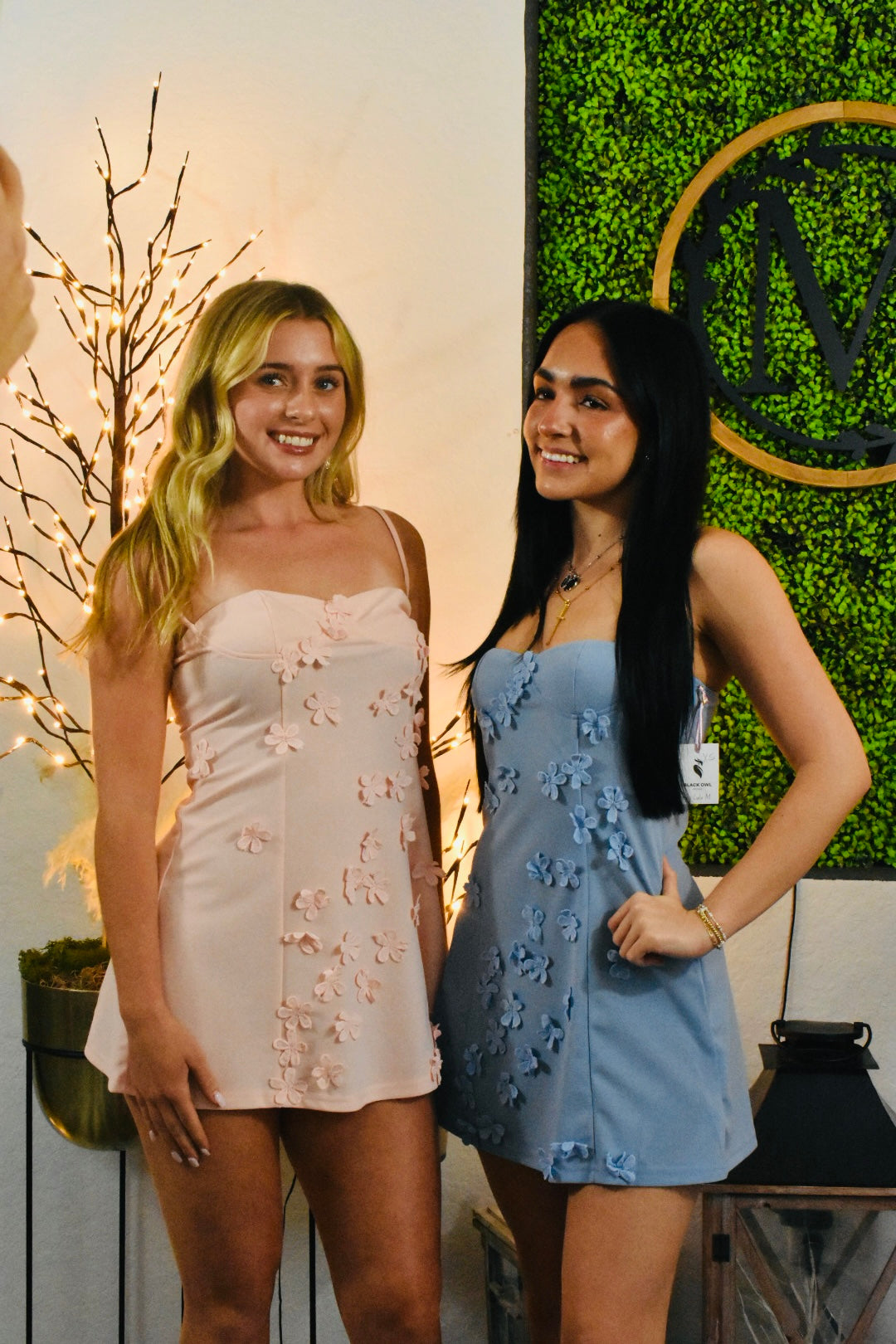 This dress features 3D floral detailing and adjustable spaghetti straps, perfect for a variety of occasions. Stay comfortable and stylish in this lined mini dress.