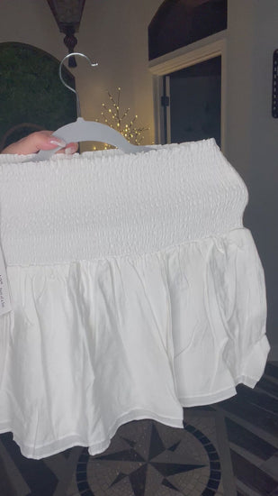This flowy stretchy mini skirt comes in a linen white color with medium stretch. Double layered!