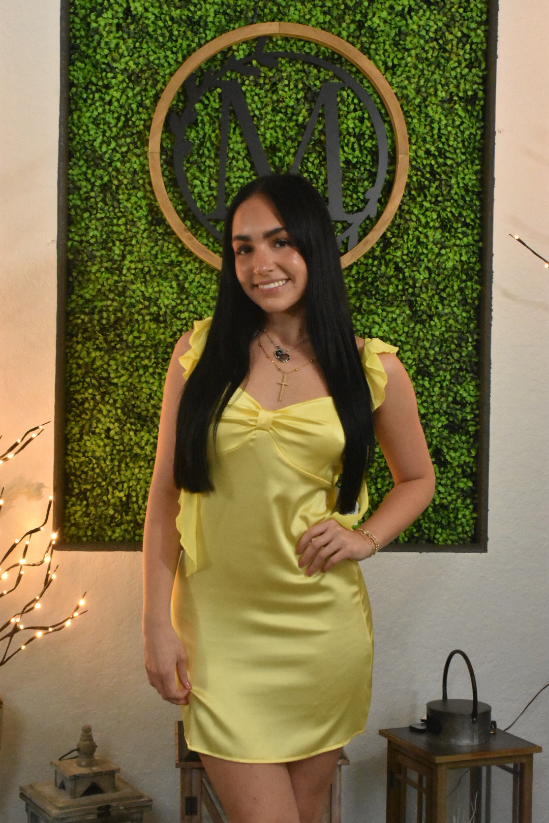 -Crafted from medium stretch satin, this dress is light and airy, making it comfortable to wear all night long.