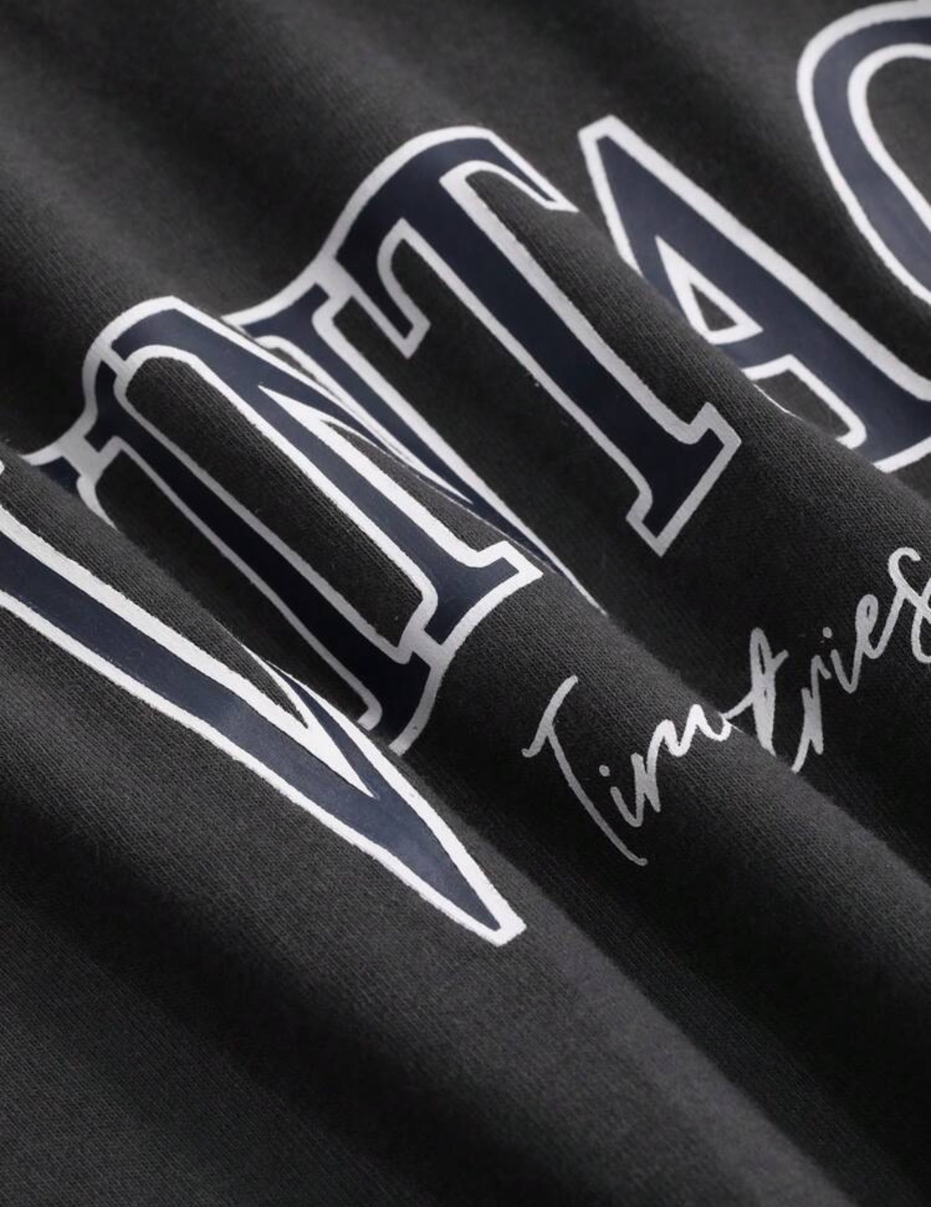 This dark grey Vintage Crop T-Shirt features two fabric extensions that can be used decoratively or to tie the middle front. The design is mildly oversized for a stylish and comfortable fit.